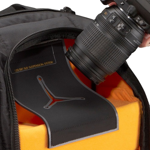 One neat feature of the SLR backpack but has maybe a chance to improve is with its patent pending hammock system which allows you to suspend your SLR so that it provides it with an additional layer of protection from the bottom of the case.Case Logic SLRC-206 shelves